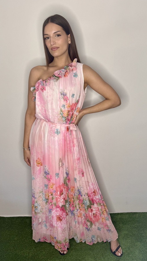 ΦΟΡΕΜΑ ΑΣΥΜΜΕΤΡΟ ΡΟΖ ΜΕ FLORAL ΜΟΤΙΒΟ
