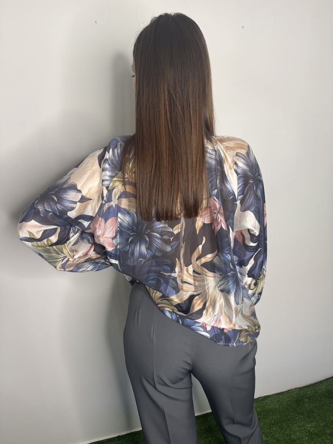 ΜΠΛΟΥΖΑ ΑΠΟ ΟΙΚΟΛΟΓΙΚΟ ΥΦΑΣΜΑ ΜΠΛΕ ΜΩΒ FLORAL
